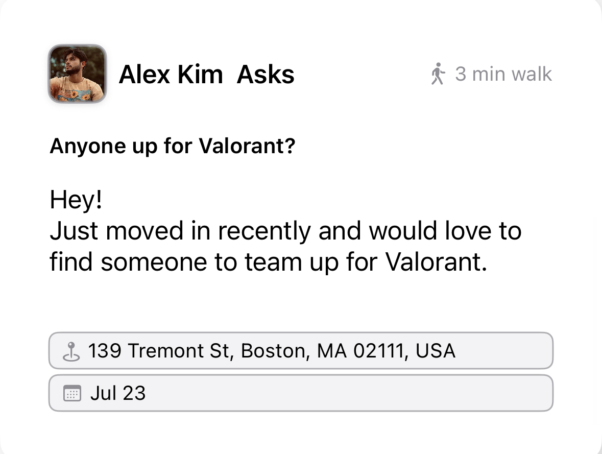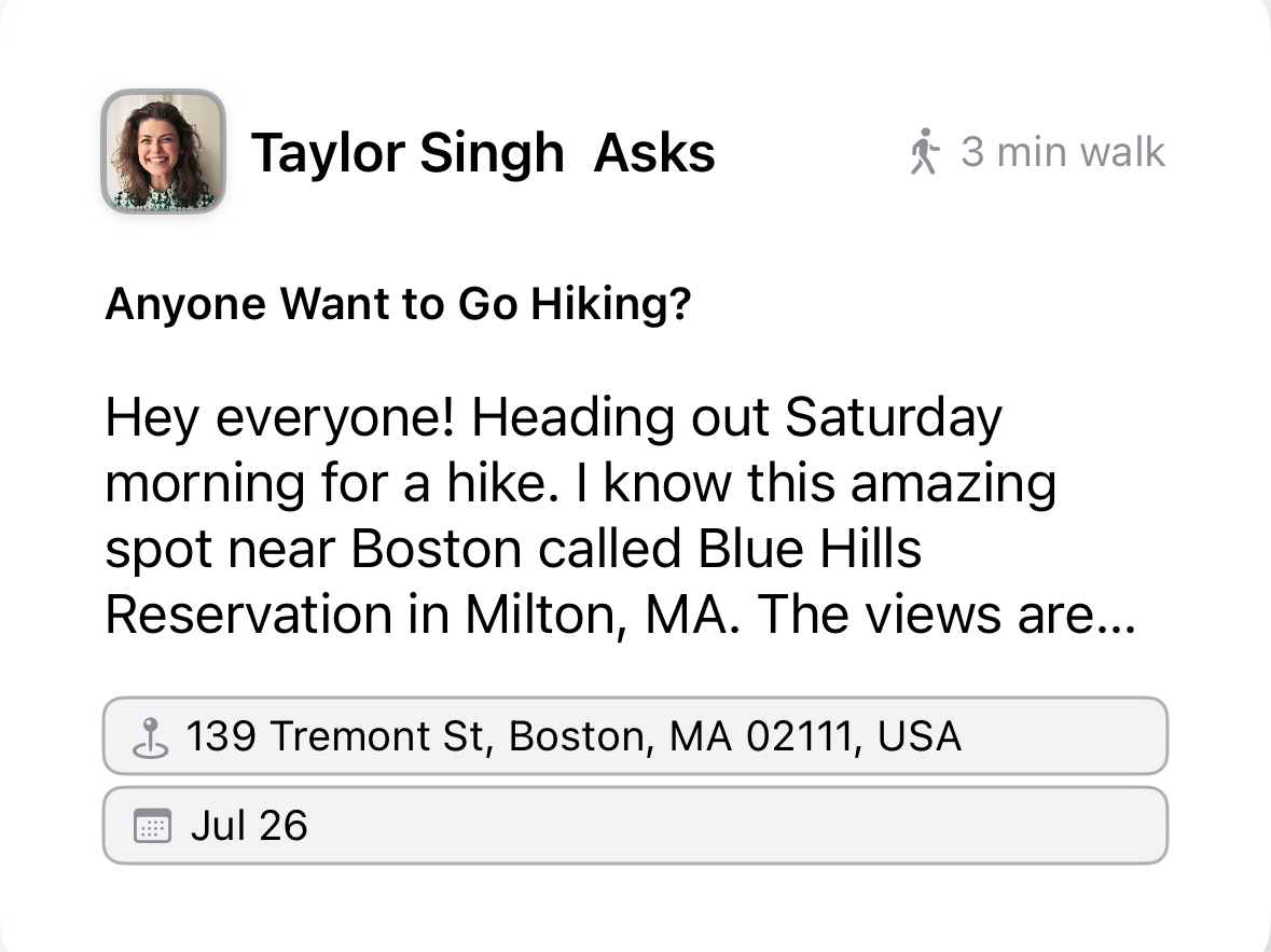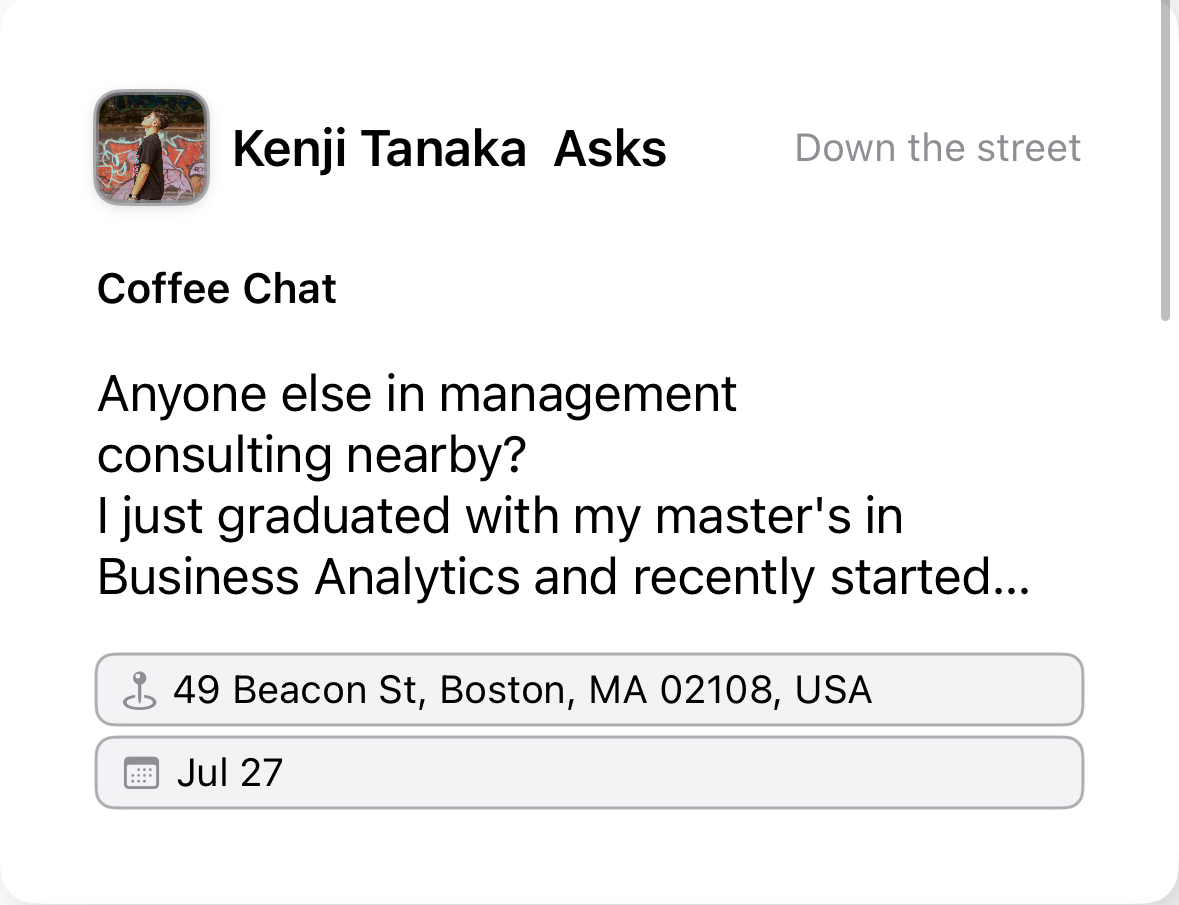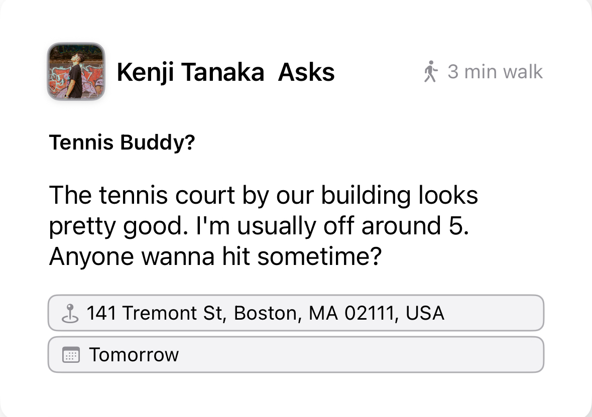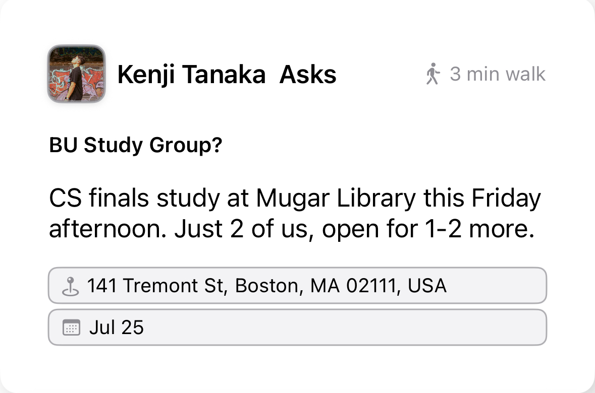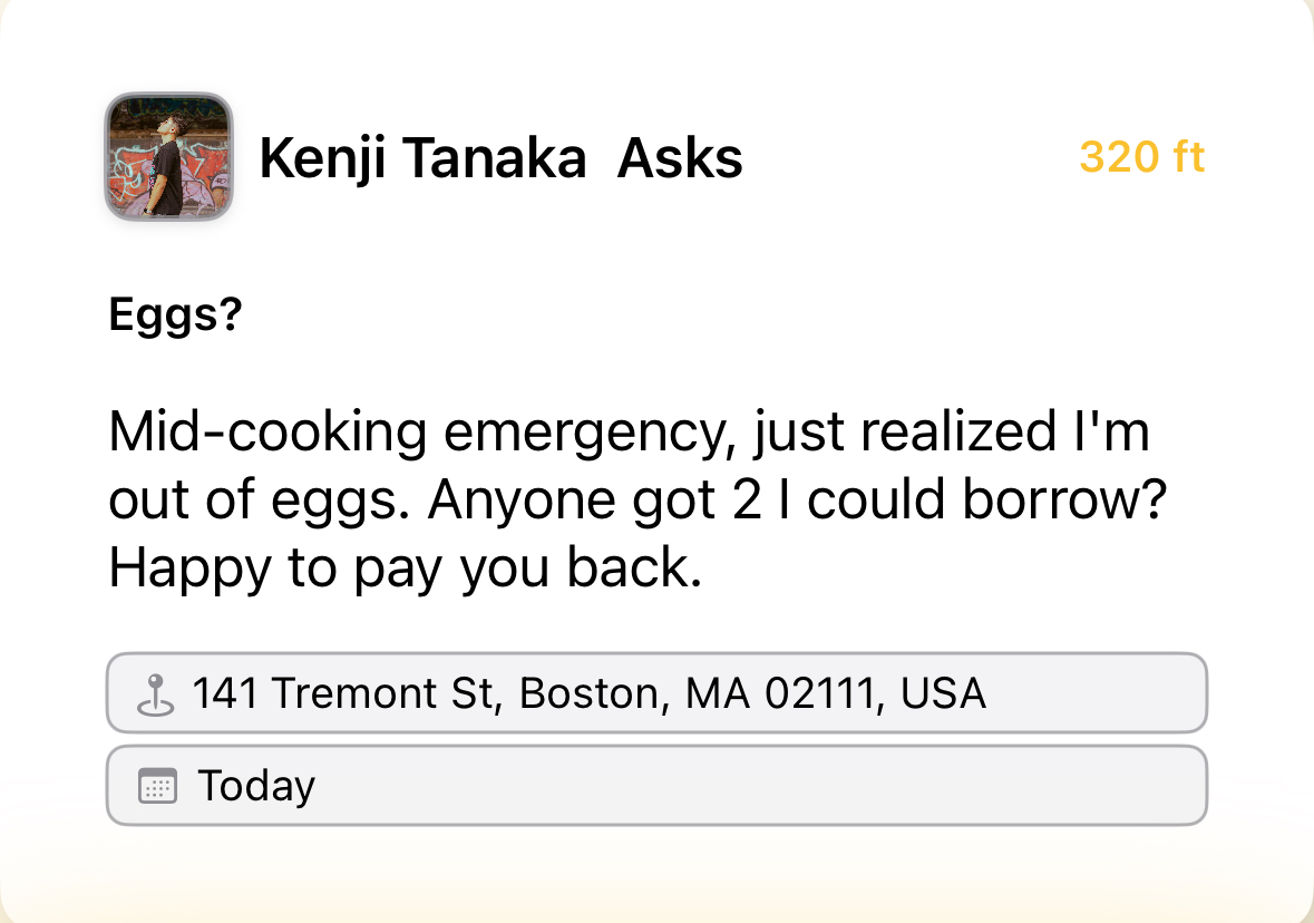 Engage with people nearby and build connections that are easy to maintain.